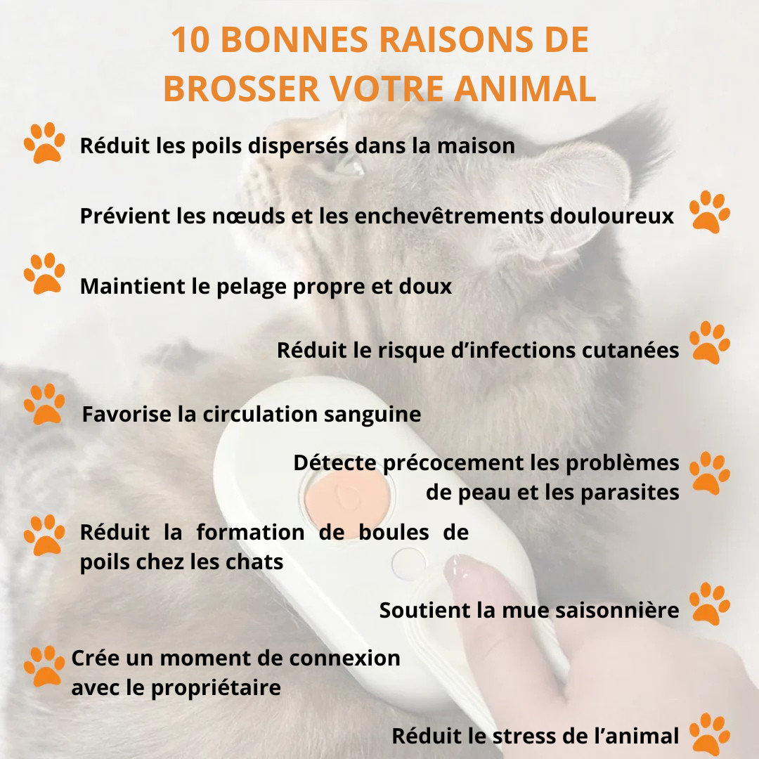 Dites adieu aux poils partout ! La brosse rechargeable de Pratikae enlève les poils en excès, masse et nettoie à la vapeur pour un pelage sain. Sans fil et avec câble inclus pour une recharge rapide !